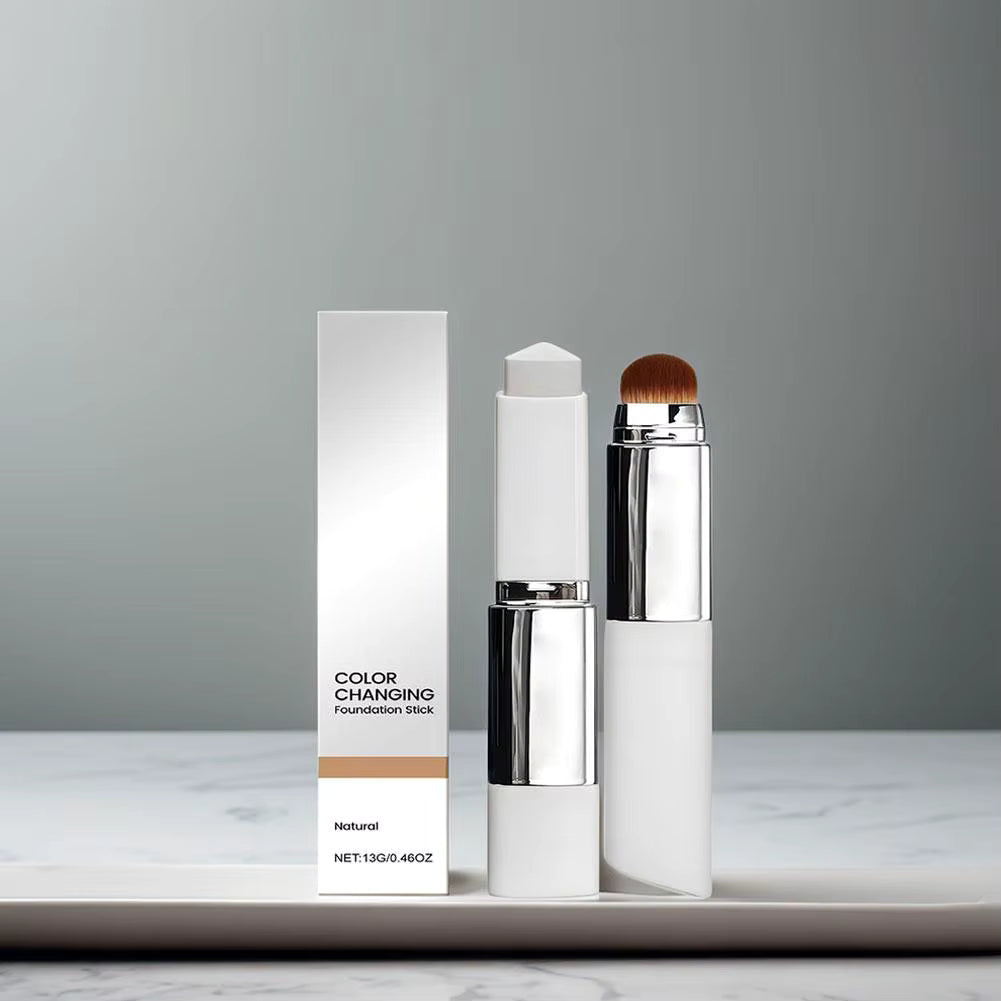 2-in-1 Color Changing Foundation Stick Brightens Concealer Stick Double Head with Brush Lightweight Moisturizing Brightening Cosmetics
